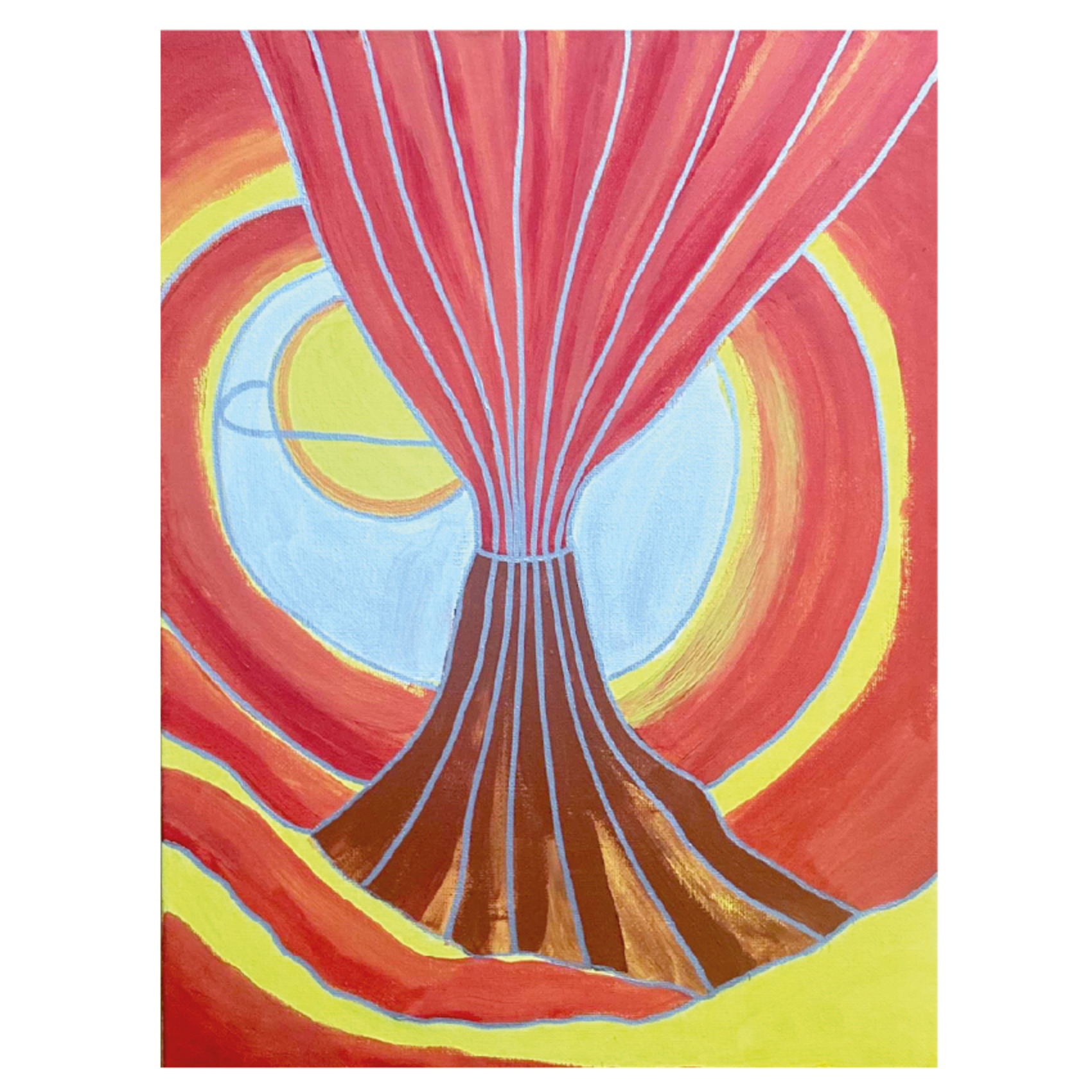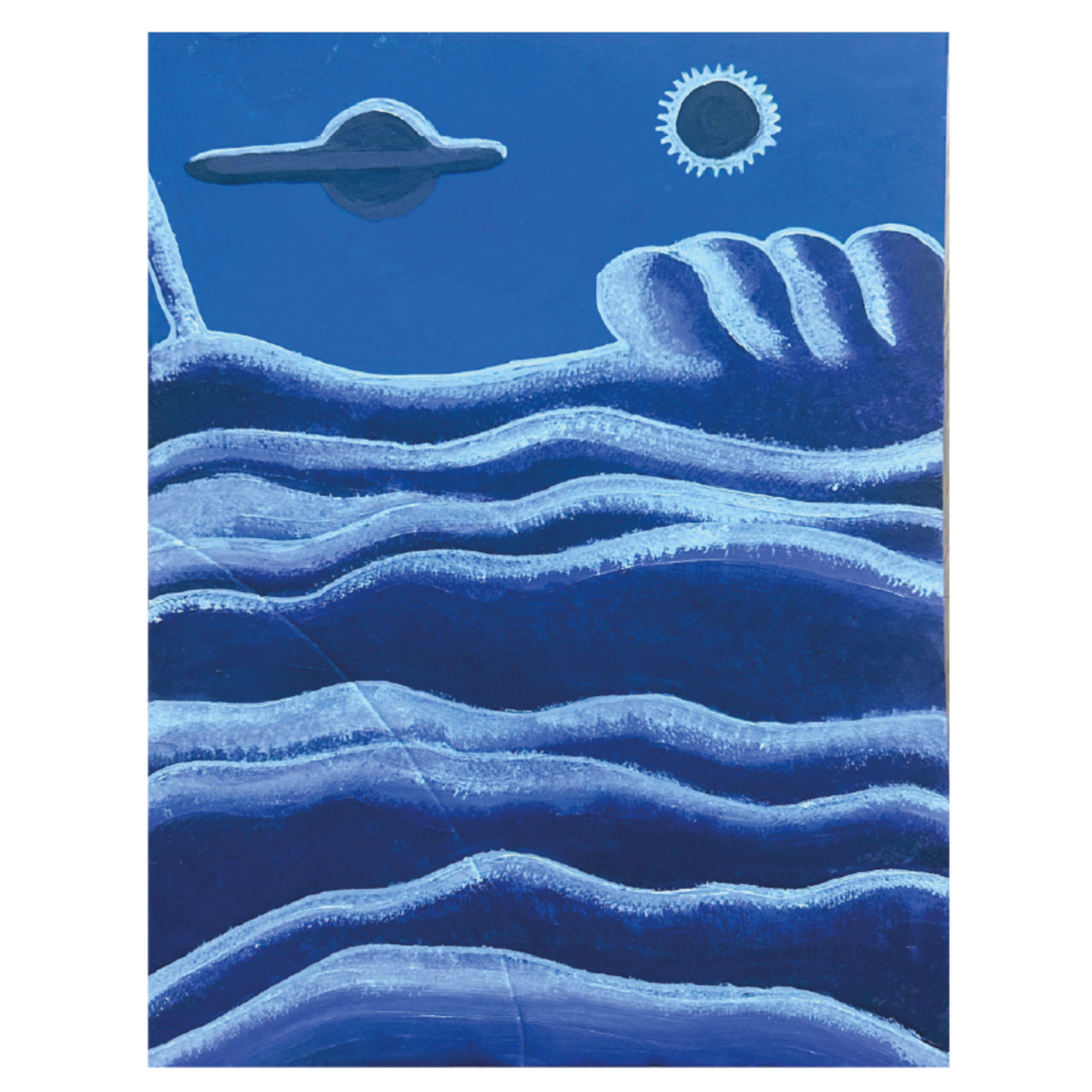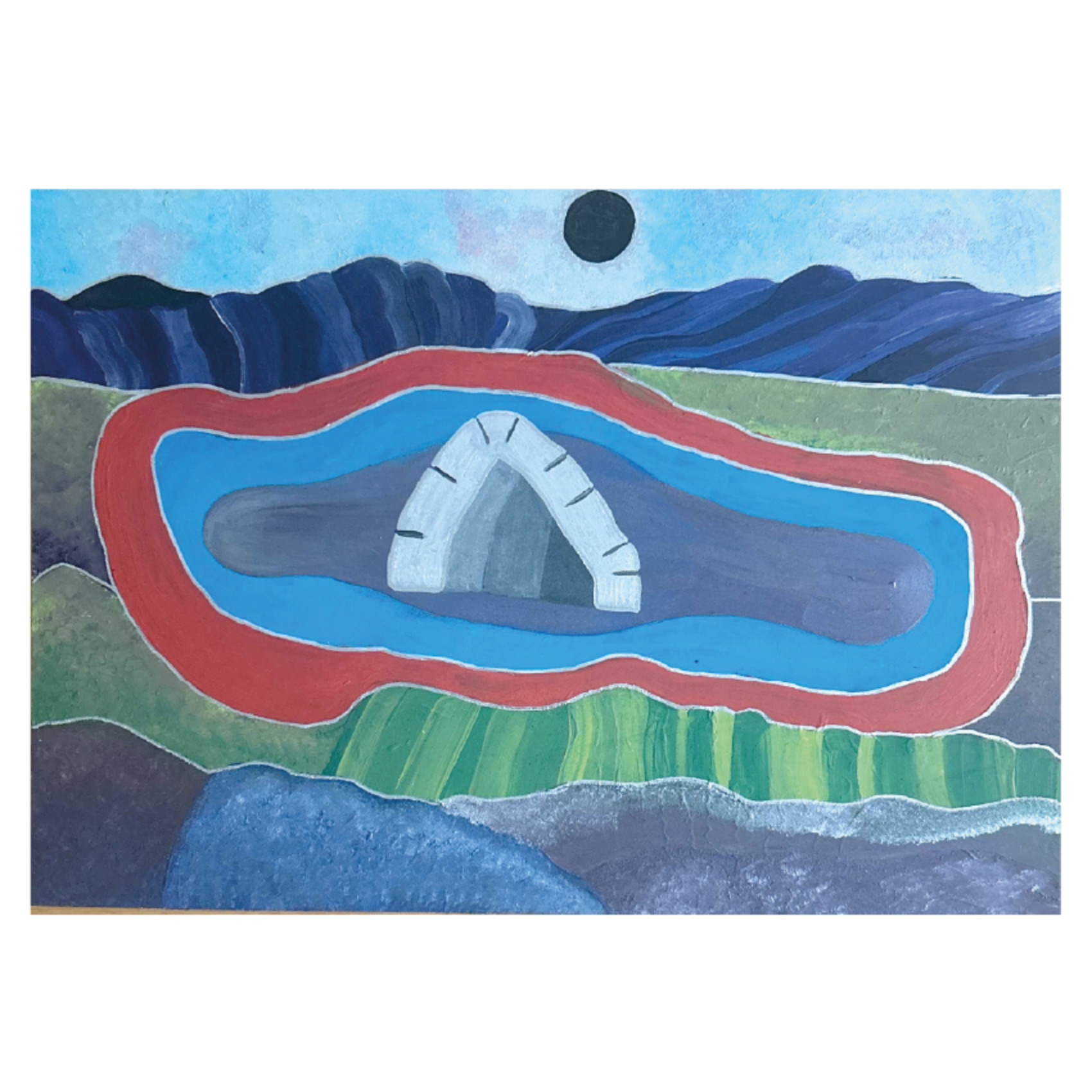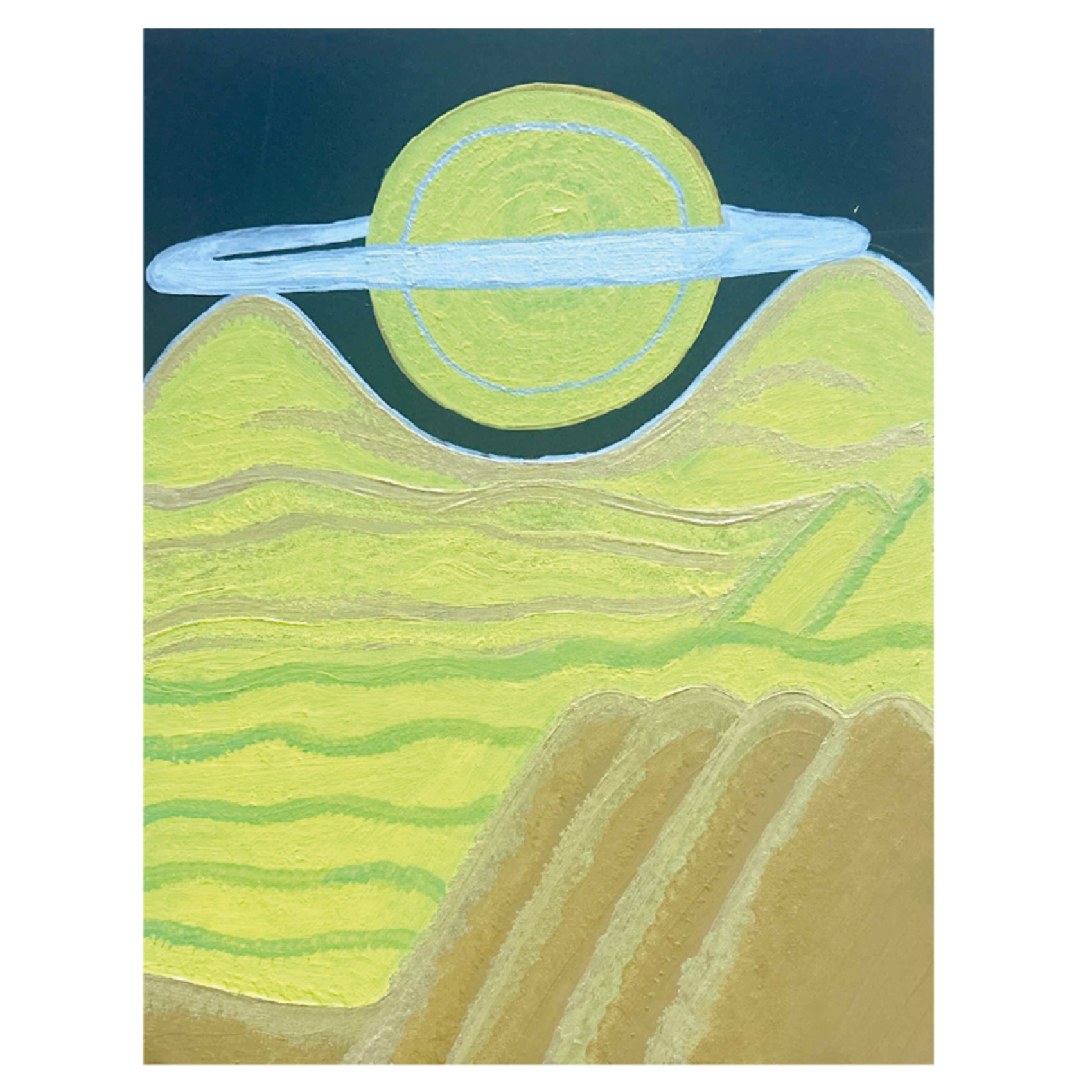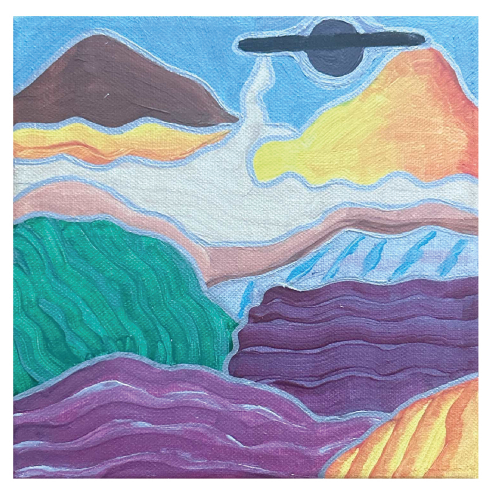 Die Werke zeigen eine leuchtende, sorbetfarbene Landschaft in einer Zukunft, die von einem kargen Paralleluniversum geprägt ist – eine aschgraue Welt, die dennoch in leuchtende Farben getaucht ist.