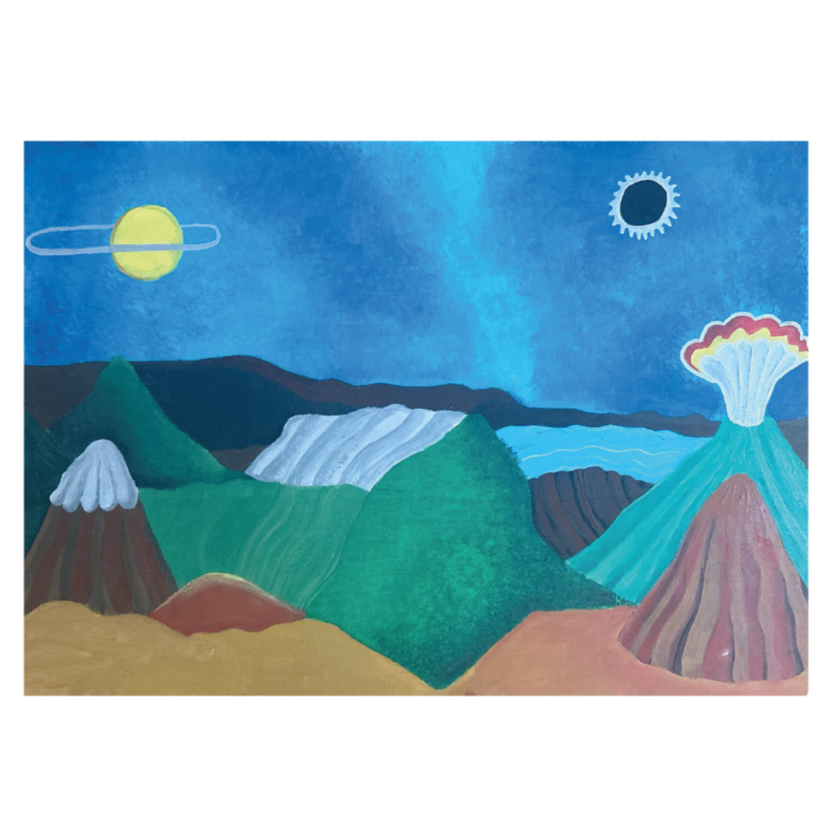 Vulkane, Höhlen, allgegenwärtiger Staub, totale Mondfinsternis, Schwarze Löcher und schwache Sterne bevölkern diese imaginären Landschaften. Die Intention dieser Arbeit ist es, die magische Perspektive auf einige unserer grundlegendsten, tief verwurzelten Gedanken auf die Spitze zu treiben – Trostlosigkeit in Staunen zu verwandeln und Abwesenheit als visuelle Fülle neu zu denken.