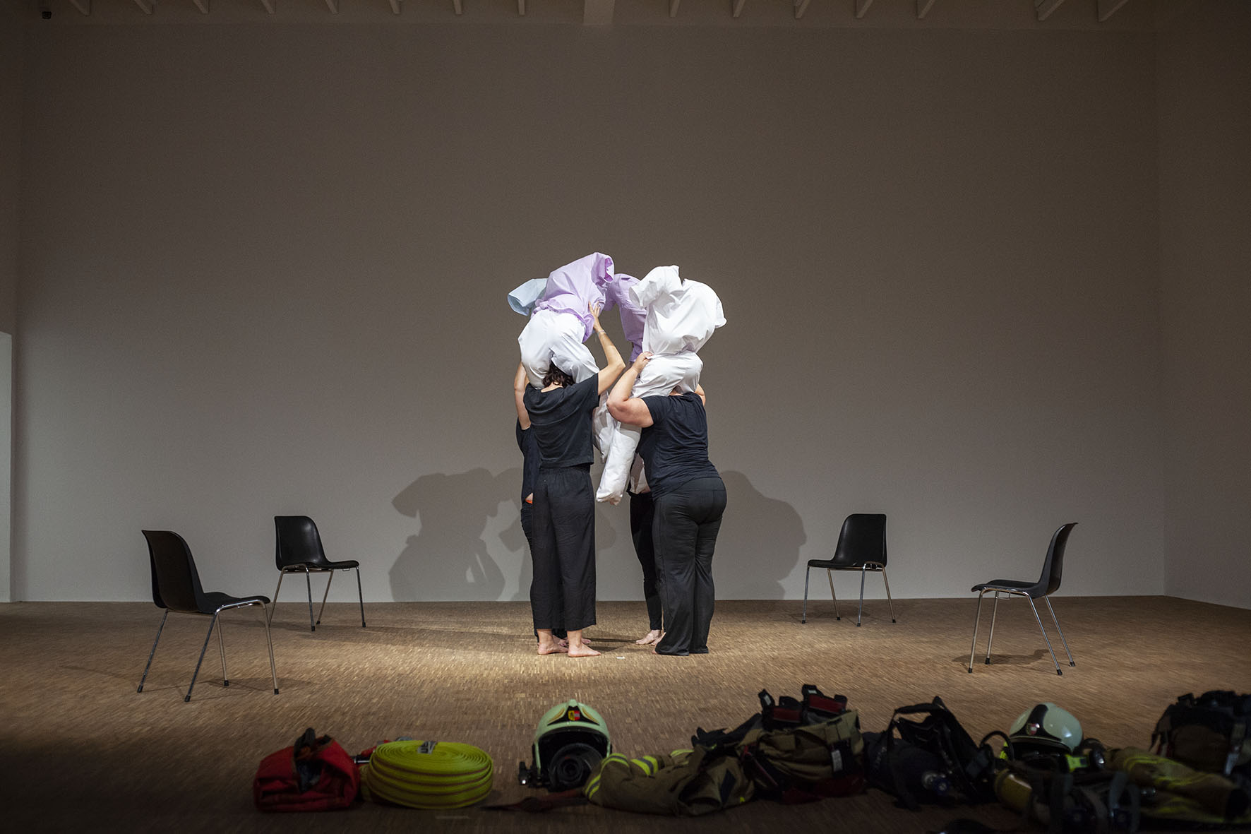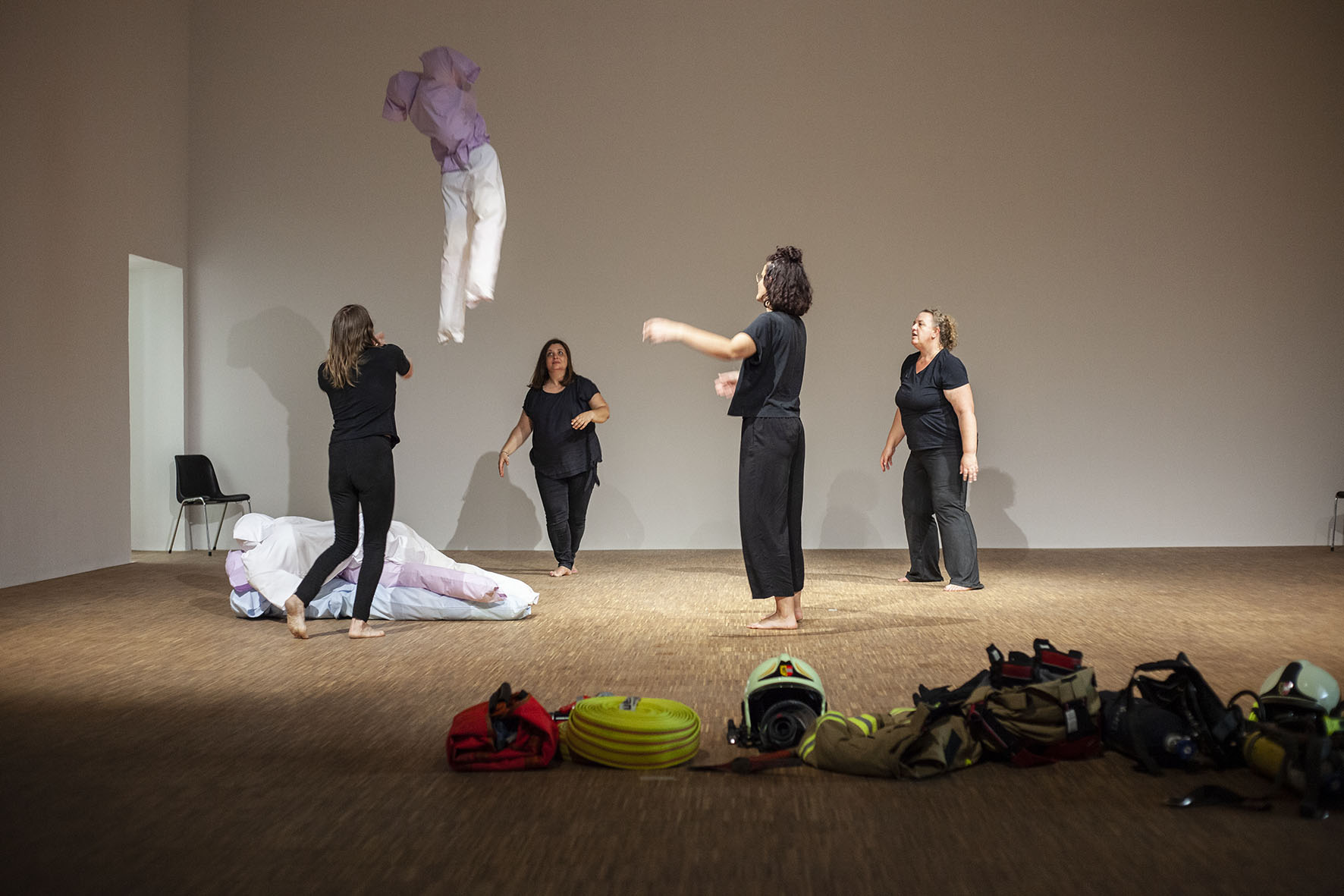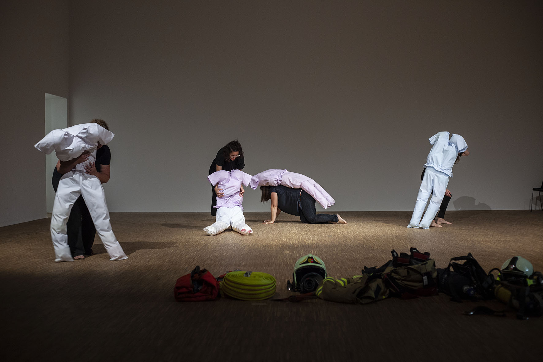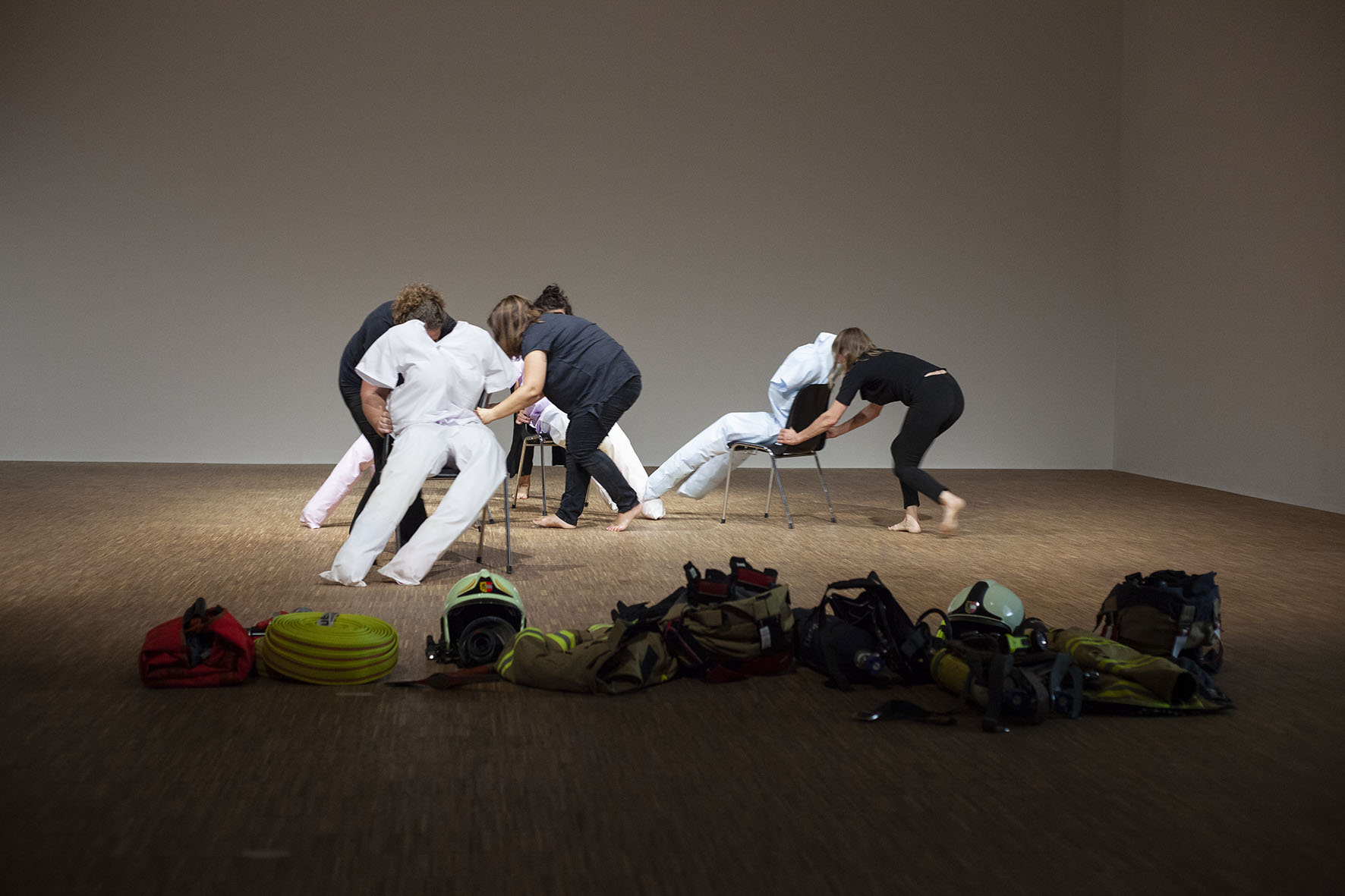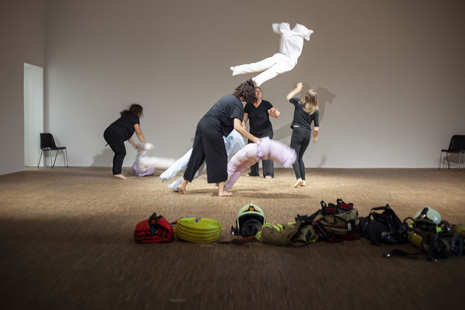The Roof is On Fire ist eine von Anna Witt konzipierte Performance, die als imaginäre Notfallübung für die anhaltende Krise im Pflegesektor dient. Dieses Stück bringt Pflegekräfte, Feuerwehrfrauen und eine Stuntfrau zusammen, die jeweils ihre spezialisierten Fähigkeiten in eine choreografierte Erzählung einbringen, die Themen wie Notfallreaktion und Pflege erkundet.