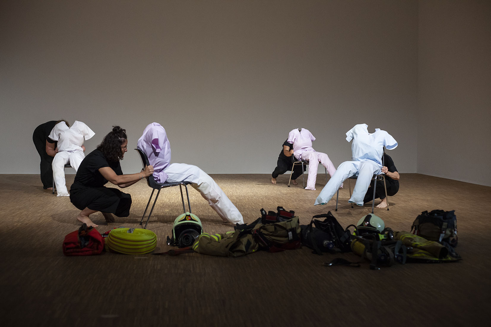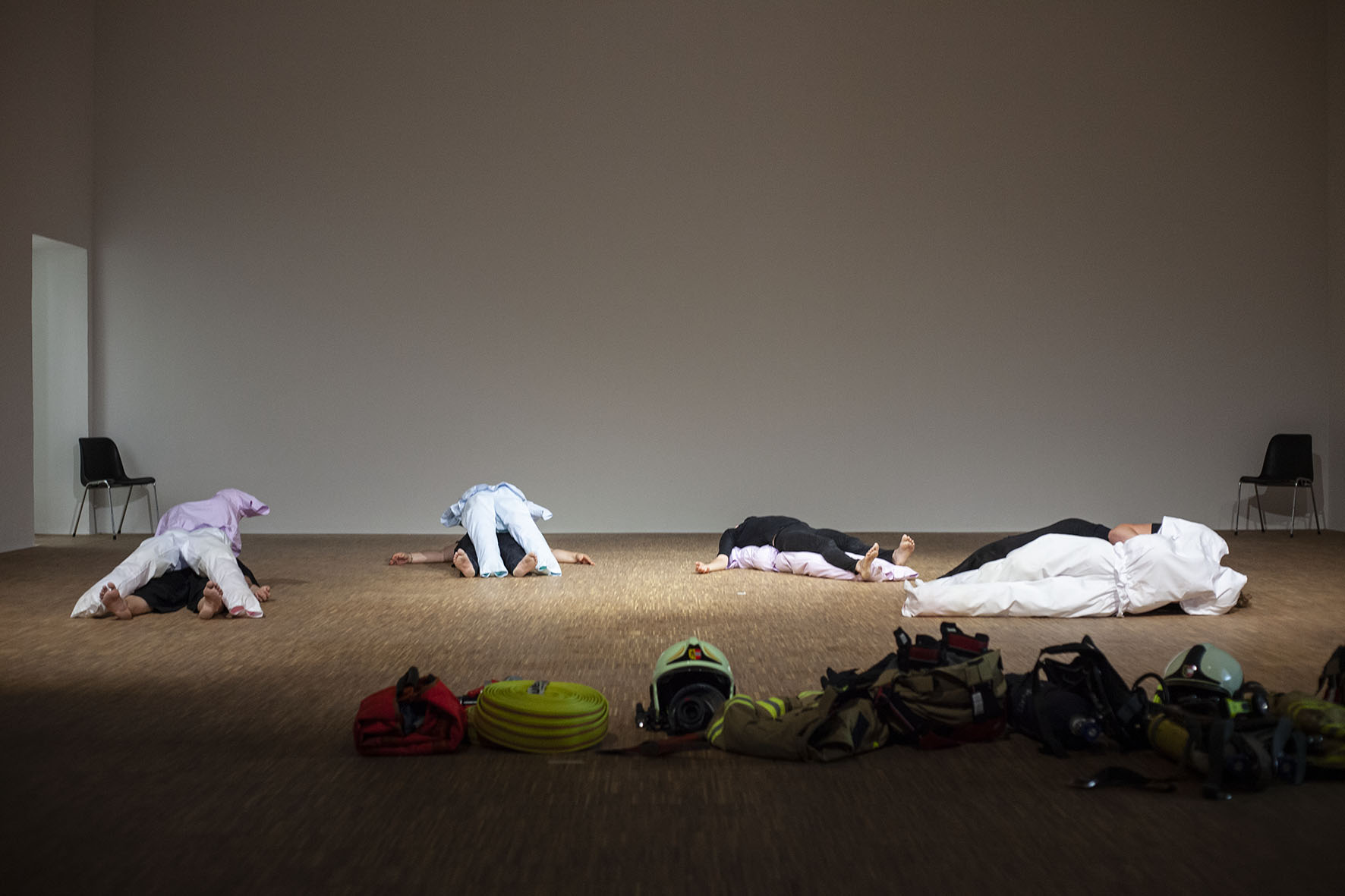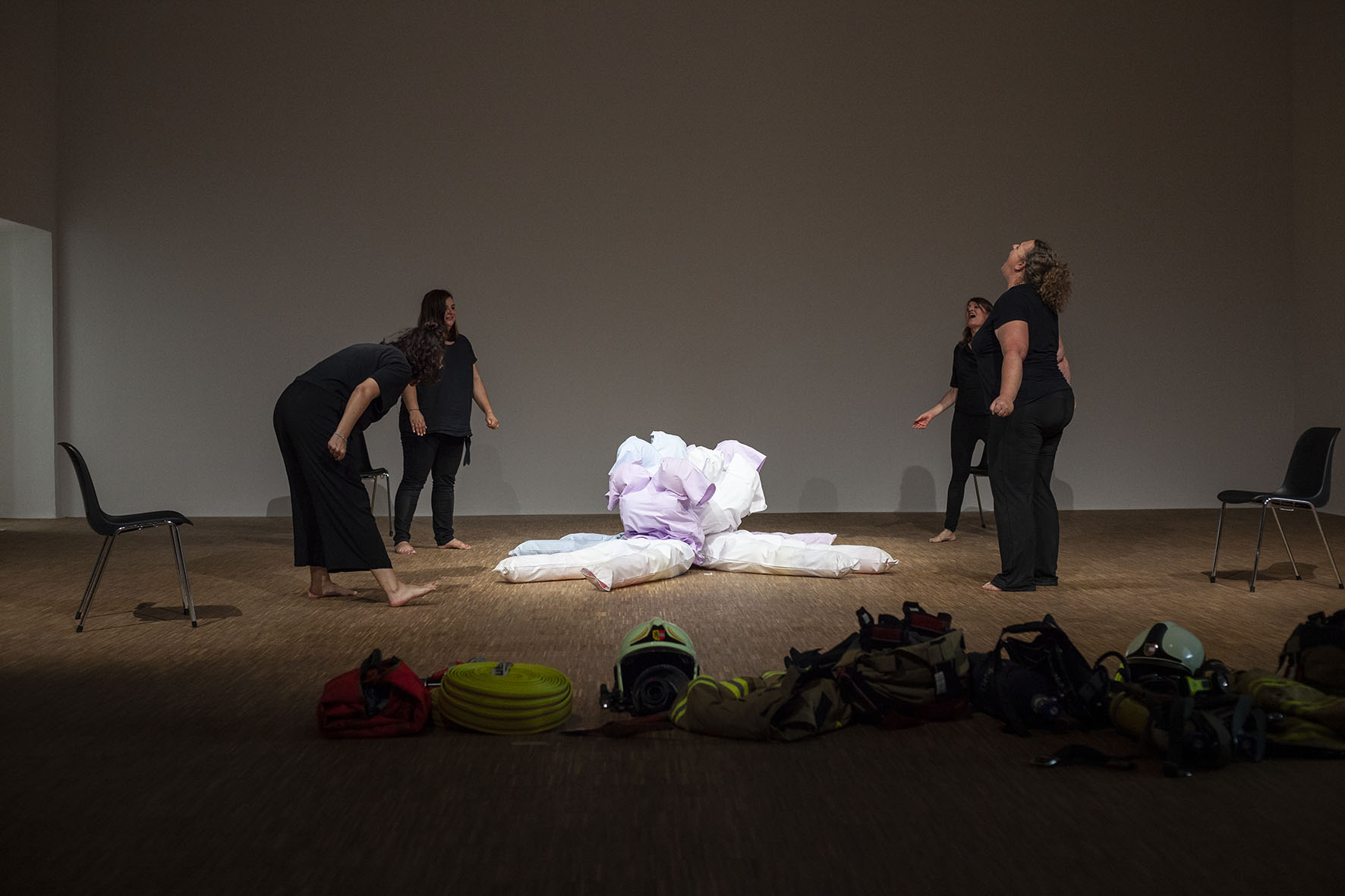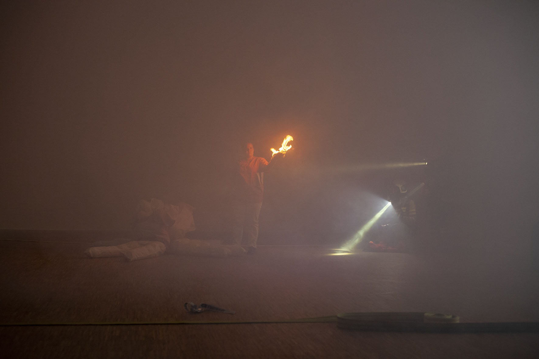 The Roof is On Fire ist eine von Anna Witt konzipierte Performance, die als imaginäre Notfallübung für die anhaltende Krise im Pflegesektor dient. Dieses Stück bringt Pflegekräfte, Feuerwehrfrauen und eine Stuntfrau zusammen, die jeweils ihre spezialisierten Fähigkeiten in eine choreografierte Erzählung einbringen, die Themen wie Notfallreaktion und Pflege erkundet.