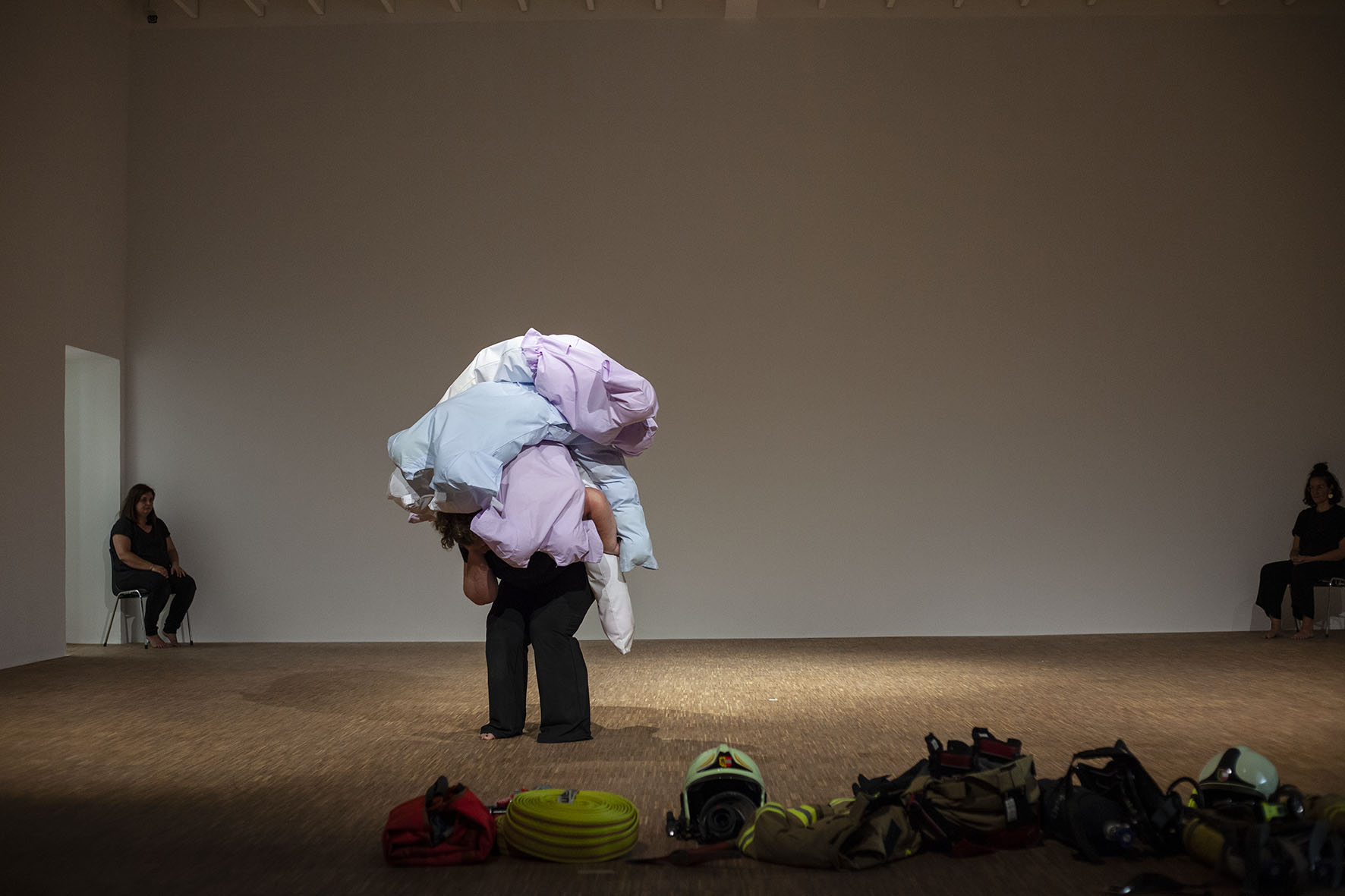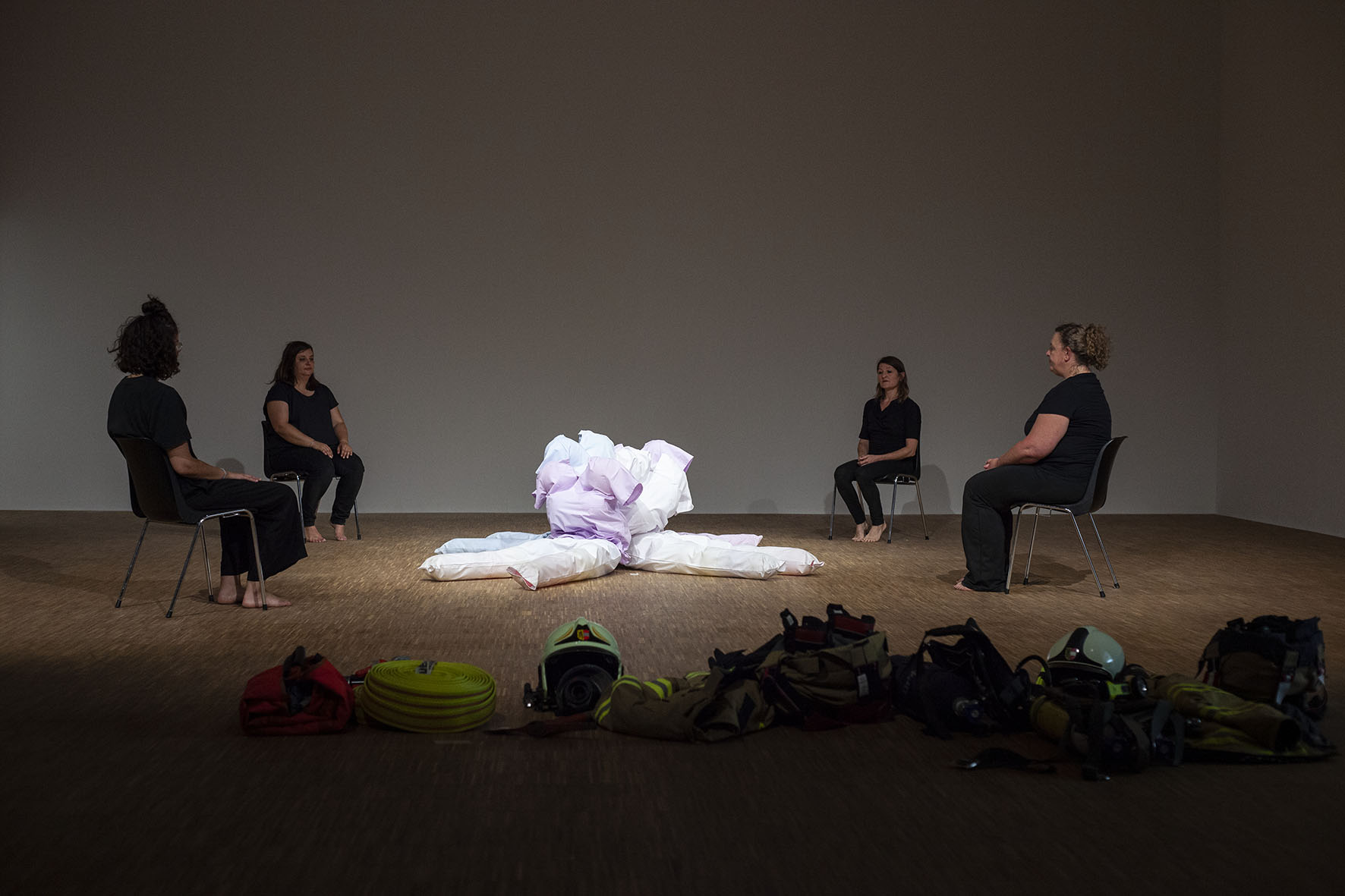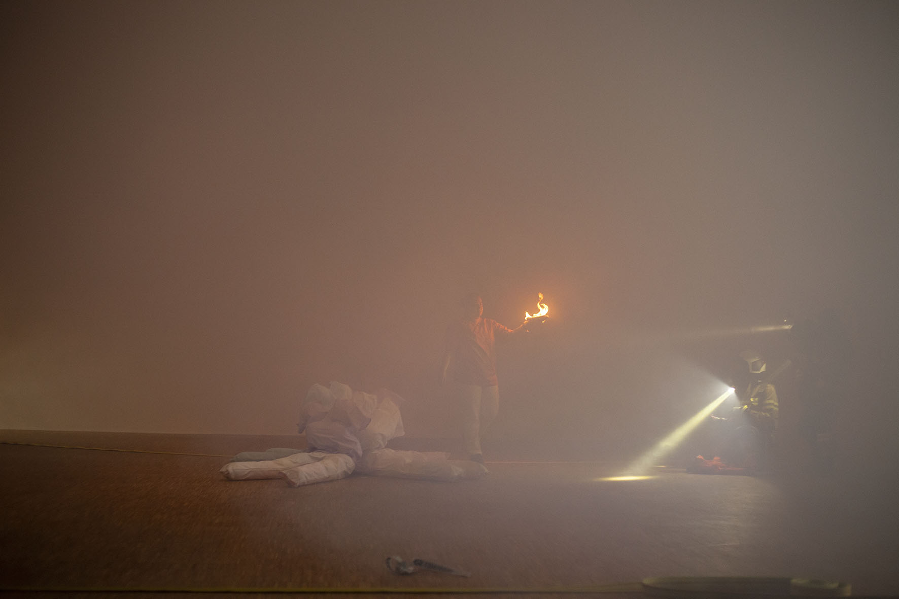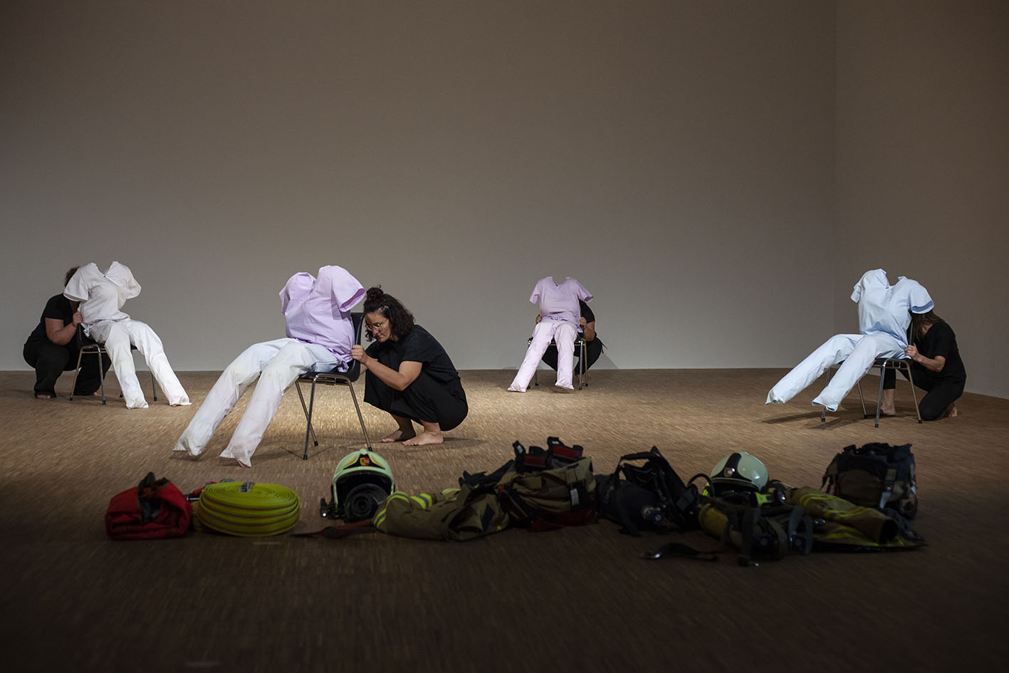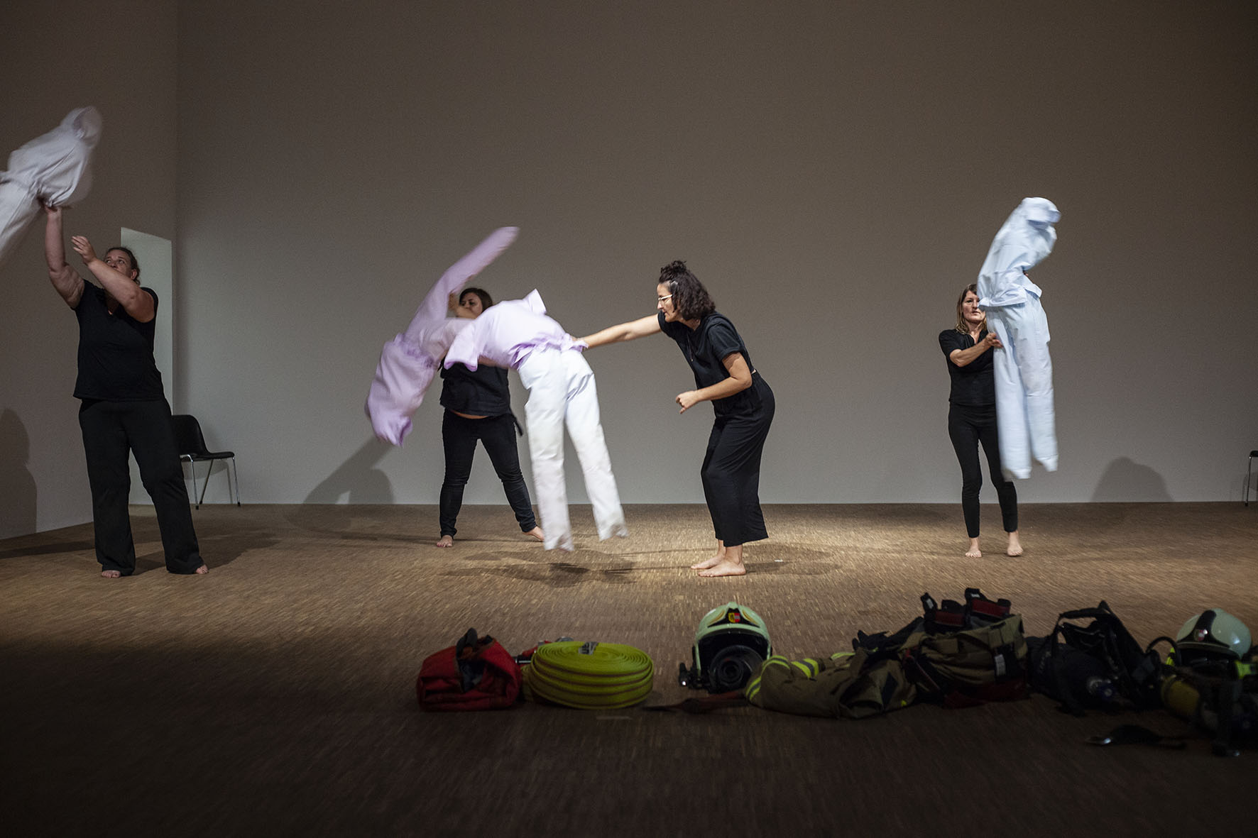 The Roof is On Fire ist eine von Anna Witt konzipierte Performance, die als imaginäre Notfallübung für die anhaltende Krise im Pflegesektor dient. Dieses Stück bringt Pflegekräfte, Feuerwehrfrauen und eine Stuntfrau zusammen, die jeweils ihre spezialisierten Fähigkeiten in eine choreografierte Erzählung einbringen, die Themen wie Notfallreaktion und Pflege erkundet.